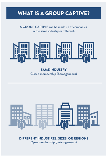 In a homogeneous captive, all member businesses come from the same industry: construction companies, manufacturers, healthcare providers, etc.