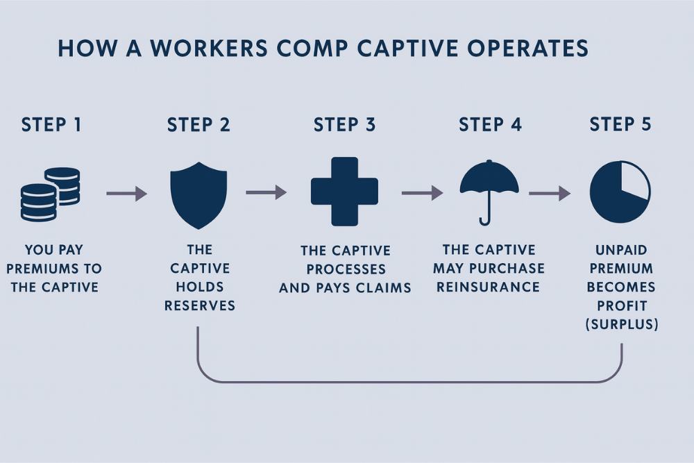 When a workers' comp claim occurs (a warehouse injury, a vehicle accident, a repetitive stress injury), the captive handles it just like a traditional insurer would.